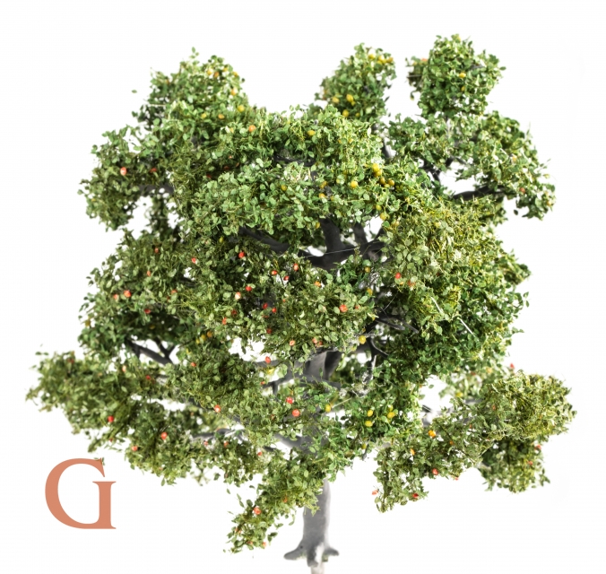 Der Kultur-Apfel (Malus domestica Borkh.), der diesem Modell als Vorbild diente, ist ursprünglich aus Kreuzungen von Wildapfelformen entstanden und auf allen Kontinenten (außer Antarktis) verbreitet. Er erreicht dabei in kultivierten Bereichen eine Wuchshöhe von 8 bis 15 Metern. Wählen Sie die passende Größe für Ihren Modellmaßstab oder folgen Sie unserer Empfehlung entsprechend der Nenngröße Ihrer Modellbahn und erhalten Sie einen exklusiven Modellbaum.