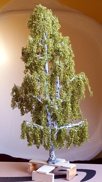 Die Hänge-Birke, auch Gemeine Birke, Sandbirke, Weißbirke oder Warzenbirke genannt (Betula pendula), die diesem Modell als Vorbild diente, ist in Europa (außer Nordskandinavien), Nordamerika und Asien verbreitet, wächst meistens auf nährstoffarmen Böden und gilt als wichtigste Pionierpflanze. Sie erreicht dabei in der Natur eine Wuchshöhe von 15 bis 25 (max. 30) Metern. Wählen Sie die passende Größe für Ihren Modellmaßstab oder folgen Sie unserer Empfehlung entsprechend der Nenngröße Ihrer Modellbahn und erhalten Sie einen exklusiven Modellbaum.
