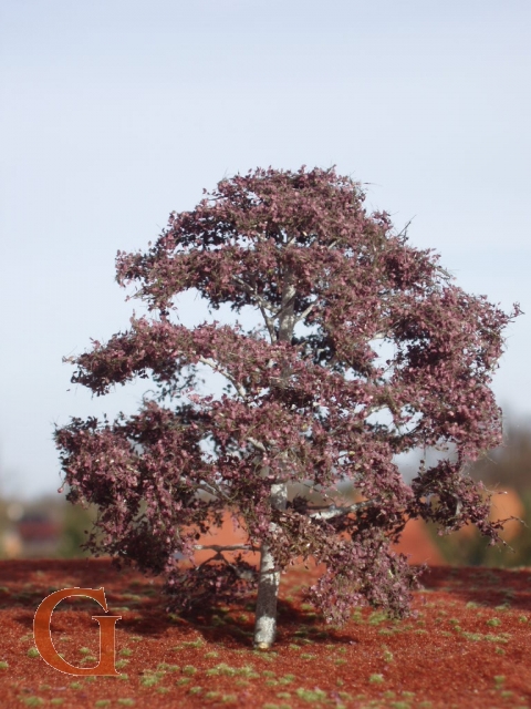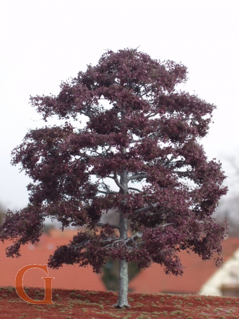 Die Blutbuche (Fagus sylvatica f. purpurea), die diesem Modell als Vorbild diente und wegen ihrer rötlichen Blätter auch Purpurbuche genannt wird, ist eine Mutation der heimischen Buche (Rotbuche). Vorwiegend ist sie in kultivierten Bereichen (Parks u. ä.) zu finden. Sie erreicht in der Natur eine Wuchshöhe von 30 Metern. Wählen Sie die passende Größe für Ihren Modellmaßstab oder folgen Sie unserer Empfehlung entsprechend der Nenngröße Ihrer Modellbahn und erhalten Sie einen exklusiven Modellbaum. Da die rote Blattfarbe im Verlauf der Vegetationsperiode abnimmt, ist diese Buchenvariante nur für Sommer verfügbar.