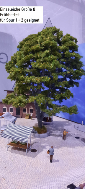 Prachtvolle Eiche im Frühherbst, die Belaubung dieser Eiche reicht bis fast zum Boden. Platzieren Sie diesen Modellbaum in Ihrer Modelllandschaft wie eine Solitärpflanze, in einer kleinen Gruppe oder gestalten Sie einen kompletten Wald. Kombiniert mit Birken und Buchen können Sie einen der in Mitteleuropa üblichen Laubmischwälder zusammenstellen.