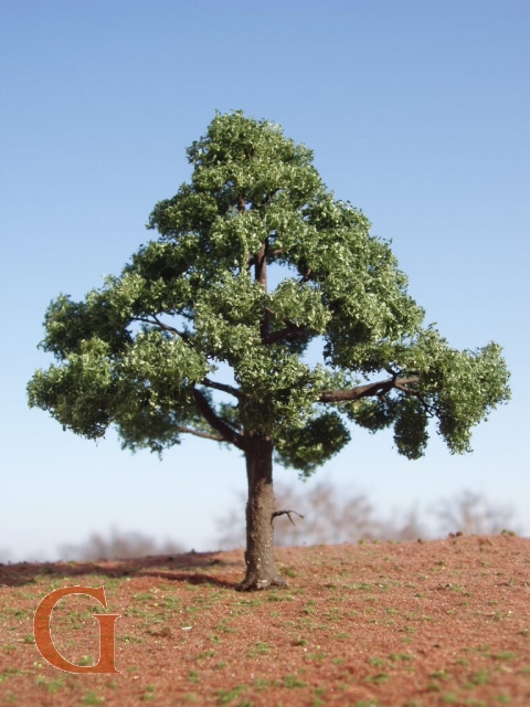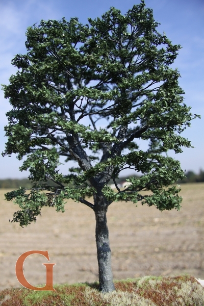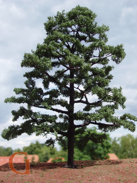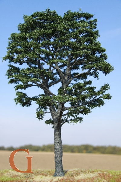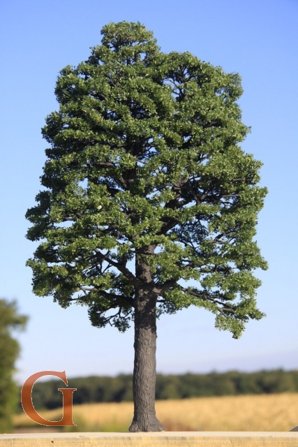 Die Stieleiche (Quercus robur), auch bekannt als Sommereiche oder Deutsche Eiche, die diesem Modell als Vorbild diente, ist die in Europa am weitesten verbreitete Eichenart und fehlt nur in einigen Regionen im äußersten Norden oder in heißen mediteranen Regionen, sowie in Höhen ab ca. 1000 Metern. Sie erreicht in der Natur eine Wuchshöhe von 20 bis 40 Metern. Wählen Sie die passende Größe für Ihren Modellmaßstab oder folgen Sie unserer Empfehlung entsprechend der Nenngröße Ihrer Modellbahn und erhalten Sie einen exklusiven Modellbaum.