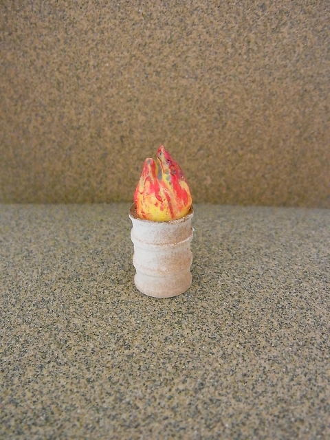 Imitation der Flamme durch flackernde LED. Die LED ist fest vergossen, die Lieferung erfolgt als Bausatz ohne eigene Spannungsquelle, mit Vorwiderstand und Brückengleichrichter zum Anschluss an das Zubehörspannungsnetz Ihrer Modellbahnanlage.