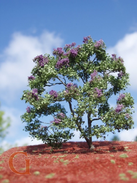 Natürlich aussehender Fliederbusch/ -baum mit Laub und blauen Blüten. Platzieren Sie diesen Modellbaum in Ihrer Modelllandschaft wie eine Solitärpflanze oder in einer kleinen Gruppe.