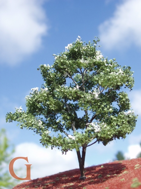 Natürlich aussehender Fliederbusch/ -baum mit Laub und weißen Blüten. Platzieren Sie diesen Modellbaum in Ihrer Modelllandschaft wie eine Solitärpflanze oder in einer kleinen Gruppe.
