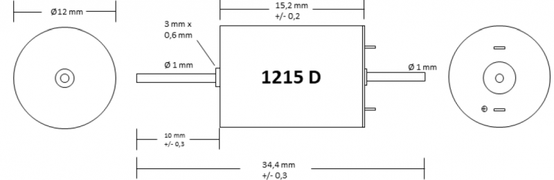 Glockenanker-Motor ∅ ca. 1 mm, Länge ca. 15 mm zum Einbau in Modellfahrzeuge mit zwei Wellenanschlüssen