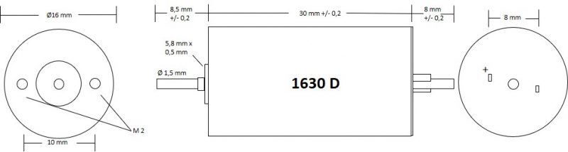 Glockenanker-Motor ∅ ca. 16 mm, Länge ca. 30 mm zum Einbau in Modellfahrzeuge mit zwei Wellenanschlüssen