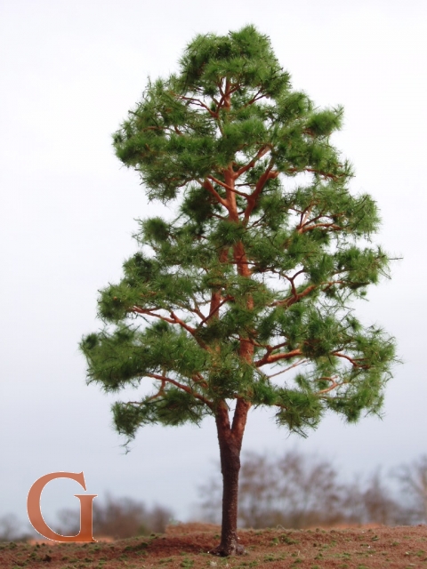 Die Gemeine Kiefer (Pinus sylvestris), auch Waldkiefer, Rotföhre, Forche oder Weißkiefer genannt, die diesem Modell als Vorbild diente, ist in Europa bis weit nach Sibirien verbreitet und auf sehr nährstoffarmen Böden (Sandböden) anzutreffen. Ihre natürliche Verbreitung ist in Deutschland sehr gering, ihr trotzdem sehr hoher Anteil am Baumbestand ist der Forstwirtschaft zu verdanken. Sie erreicht in der Natur eine Maximalhöhe von 48 Metern. Wählen Sie die passende Größe für Ihren Modellmaßstab oder folgen Sie unserer Empfehlung entsprechend der Nenngröße Ihrer Modellbahn und erhalten Sie einen exklusiven Modellbaum.