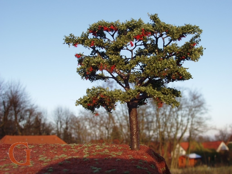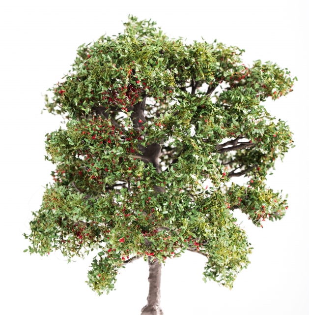 Die Vogel-Kirsche (Prunus avium), im Allgemeinen als Süßkirsche bezeichnet, die diesem Modell als Vorbild diente, ist ursprünglich in Europa vom 54. Breitengrad bis zum nördlichen Vorderen Orient verbreitet, wurde aber auch im Norden Afrikas, in Vorderindien und im Osten Nordamerikas eingebürgert. Sie erreicht dabei in kultivierten Bereichen eine Wuchshöhe von 15 bis 20 Metern. Wählen Sie die passende Größe für Ihren Modellmaßstab oder folgen Sie unserer Empfehlung entsprechend der Nenngröße Ihrer Modellbahn und erhalten Sie einen exklusiven Modellbaum.