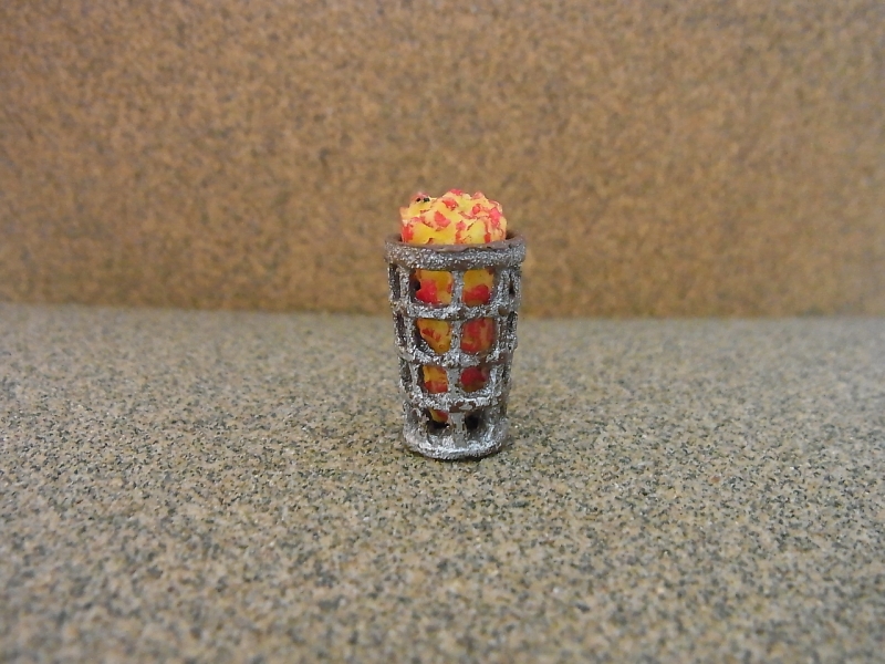 Imitation der Flamme durch flackernde LED. Die LED ist fest vergossen, die Lieferung erfolgt als Bausatz ohne eigene Spannungsquelle, mit Vorwiderstand und Brückengleichrichter zum Anschluss an das Zubehörspannungsnetz Ihrer Modellbahnanlage.