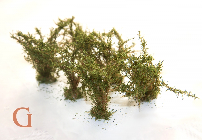 6 wildwachsende Sträucher in savannengrün, Höhe 2-3 cm, superfein - sehr kleine Laubgröße