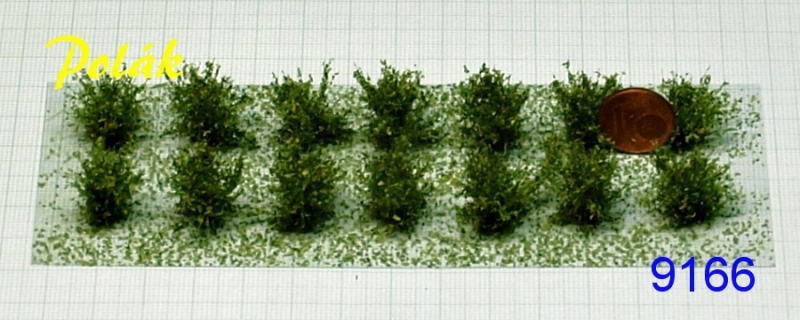 14 Stück wildwachsende, niedrige Modell-Sträucher mit Belaubung als Grüngemisch, Höhe ca. 1,5 cm, fein - kleine Laubgröße, empfohlen für die Nenngrößen TT, H0 und 0