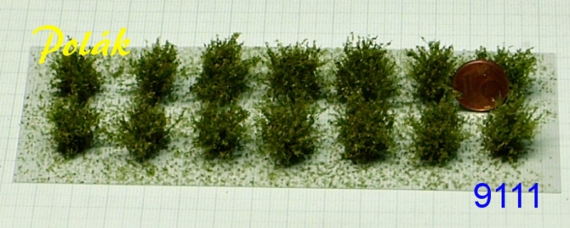14 Stück wildwachsende, niedrige Modell-Sträucher mit savannengrüner Belaubung, Höhe ca. 1,5 cm, fein - kleine Laubgröße, empfohlen für die Nenngrößen TT, H0 und 0