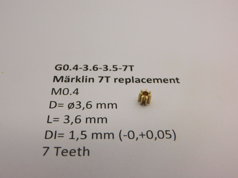 Ritzel, Zahnrad aus Metall, geeignet für alle Wellen mit 1,5-mm-Außendurchmesser, Ersatz für Märklin, 7 Zähne