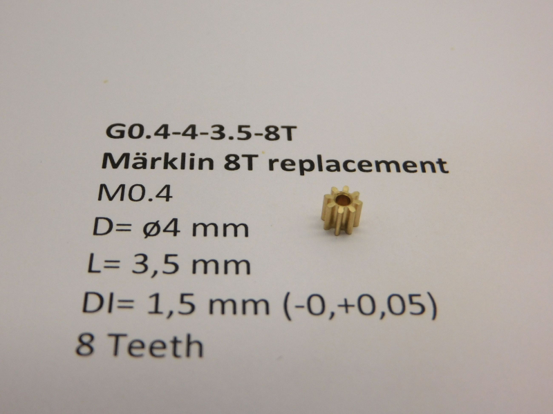 Ritzel, Zahnrad aus Metall, geeignet für alle Wellen mit 1,5-mm-Außendurchmesser, Ersatz für Märklin, 8 Zähne