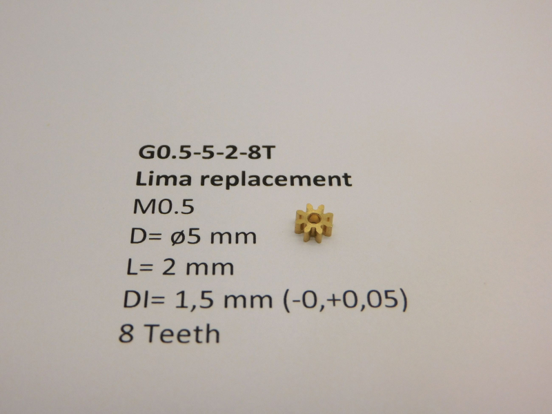 Ritzel, Zahnrad aus Metall, geeignet für alle Wellen mit 1,5-mm-Außendurchmesser, Ersatz für Lima, 8 Zähne