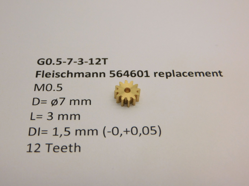 Ritzel, Zahnrad aus Metall, geeignet für alle Wellen mit 1,5-mm-Außendurchmesser, Ersatz für Fleischmann 564601, 12 Zähne