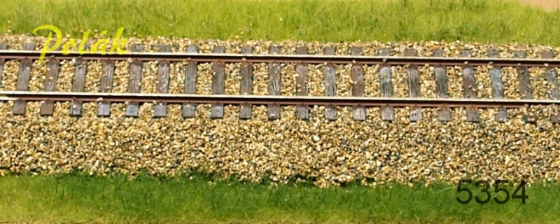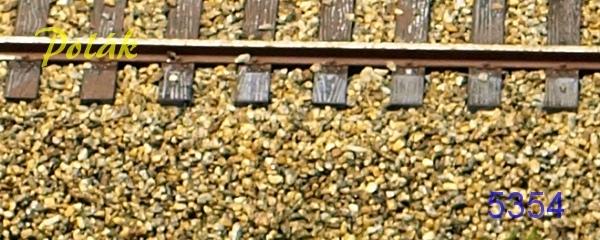 Nach fertigem Gleisaufbau Schotter in das Gleisbett streuen und ggf. ausgleichen. Anschließend Schotterkleber darüberträufeln und bis zum Festwerden warten.
