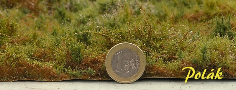 Waldboden in der Variante A in Grün- und Brauntönen, mit eingearbeiteten Sträuchern, Moosimitaten, Grasbüscheln und weißen Blüten, gut geeignet für Frühling oder Frühsommer