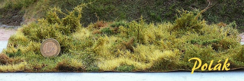 Waldboden in der Variante C in Gelb- und Brauntönen, mit eingearbeiteten Sträuchern, Moosimitaten und Grasbüscheln, gut geeignet für Spätsommer und Herbst