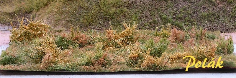 Waldboden in der Variante D in Grün- und Gelbtönen, mit eingearbeiteten Sträuchern, Moosimitaten und Grasbüscheln, gut geeignet für Sommer und Frühherbst