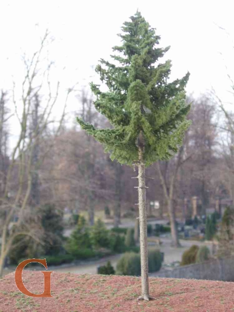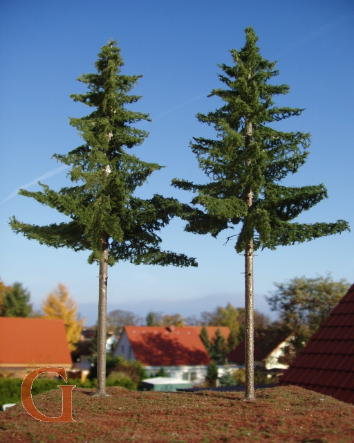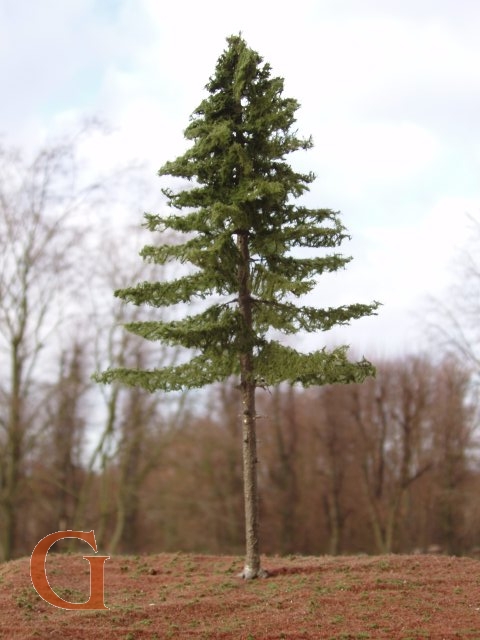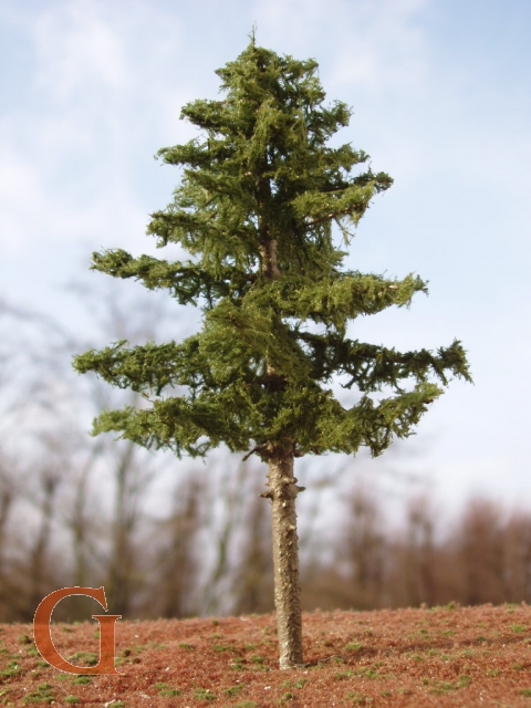 Die Gemeine Fichte (Picea abies), auch Gewöhnliche Fichte, Rotfichte oder Rottanne genannt, die diesem Modell als Vorbild diente, ist in ganz Europa (ausgenommen Britische Inseln und Iberische Halbinsel) bis weit ins kontinentale Asien verbreitet und kommt unter günstigen Bedingungen bis zu einer Höhe von über 2000 Metern vor. Sie erreicht dabei in der Natur eine Wuchshöhe von 40 Metern, in extremen Höhenlagen jedoch nur 80 Zentimeter. Wählen Sie die passende Größe für Ihren Modellmaßstab oder folgen Sie unserer Empfehlung entsprechend der Nenngröße Ihrer Modellbahn und erhalten Sie einen exklusiven Modellbaum.