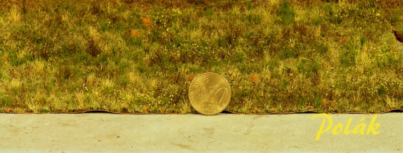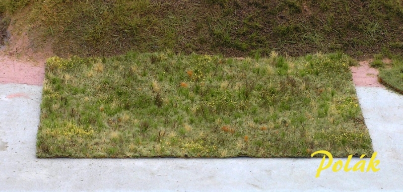 Eine Wiese mit grünen und vertrockneten Grasanteilen, durchzogen mit Flechten, Abmessungen 25 x 20 cm - Höhe 1,0-1,5 cm