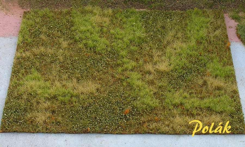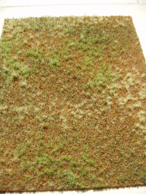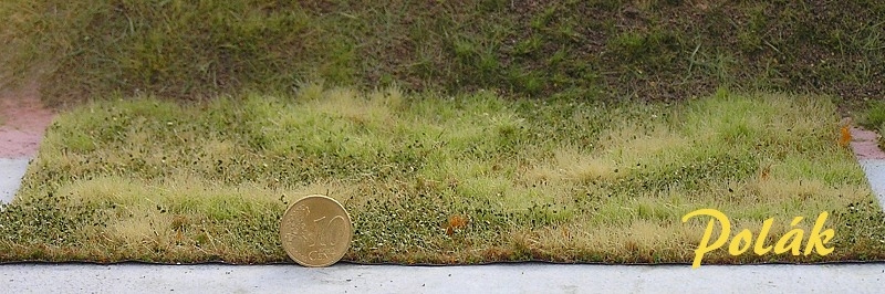 Eine Wiese mit verschiedenfarbigen grünen Grasanteilen mit durchscheinendem braunen Mutterboden, Abmessungen 25 x 20 cm - Höhe 1,0-1,5 cm
