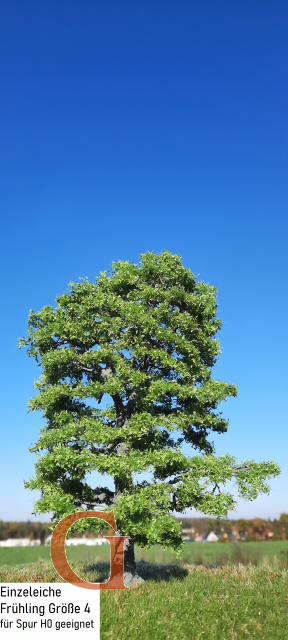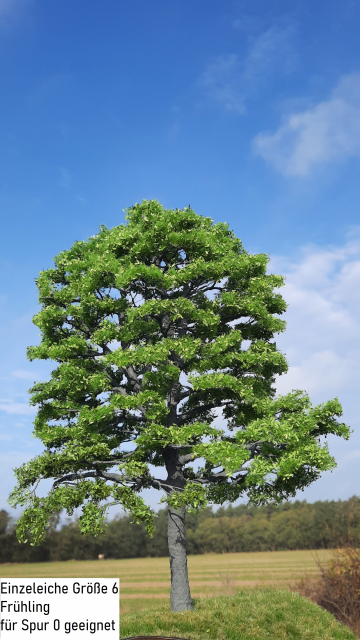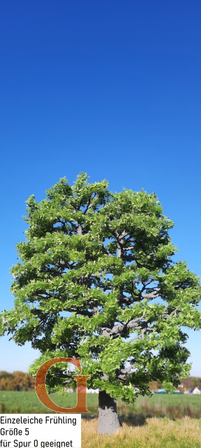 Beautiful oak in spring, the foliage reaches almost to the ground. Place this article in your model landscape as a solitary plant, in a small group or create a complete forest. Combined with birches and beeches, you can create one of the common mixed deciduous forests in Central Europe.